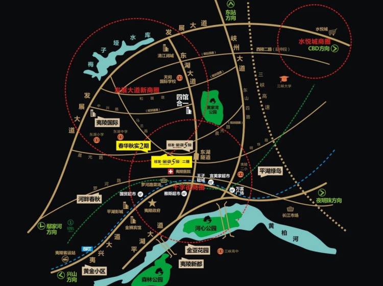 教育配套: 天问国际学校、东湖幼儿园、童欣幼儿园、夷陵区实验小学、东湖小学、小溪塔二小、东湖中学、小溪塔三中、东湖高中等