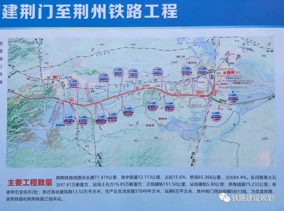 北起荆门,南至荆州,沿线设荆门西站、十里铺站及荆州站(扩建),全长约78公里,总投资约110亿元。