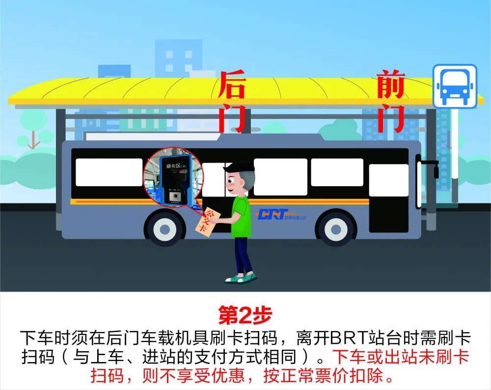 切记:下车或离开BRT站台时必须在车辆后门或出站口处刷卡、扫码,这是享受换乘优惠的先决条件。习惯成自然,相信大家很快就会适应的。