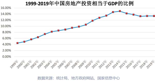 从房地产投资相当于GDP的比例看,2013年是谷底,为32.8%,此后,随着企业经营战略向一二线城市转移,该比值持续上升,直至2016年达到峰值37.8%。