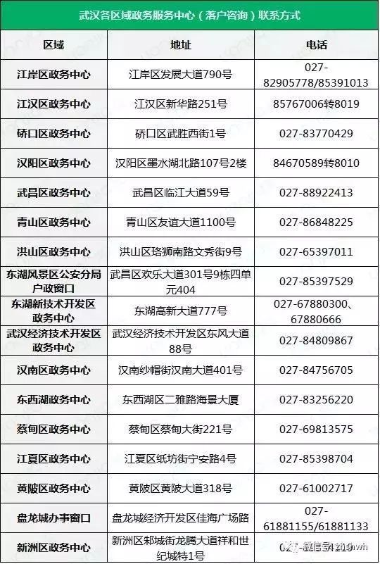 武汉各区政务中心落户咨询联系方式