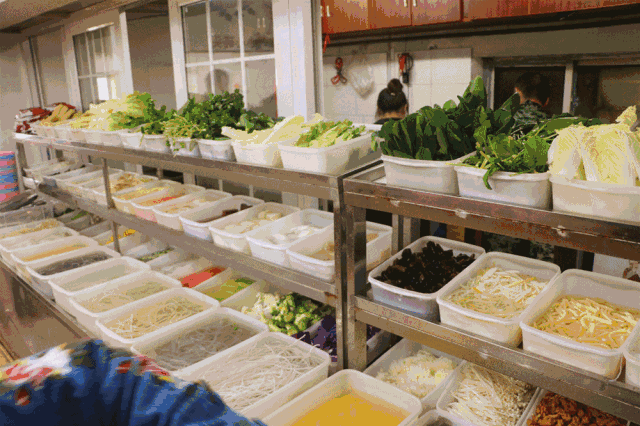 不管去多少次都还是和以前去的任何一次一样爆满,大冬天的都挤在一家麻辣烫店。柜台上满满的选择,拿着篮子把想吃的一并往里放,然后交给老板称重。