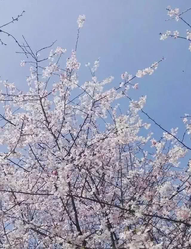 樱花树不是我们常见的那般粗壮,这里的樱花每一颗细小的枝丫上面挂满了姹紫嫣红的樱花。浓郁的文化氛围下观赏樱花,既有花香又有书香,想必定是别有一番滋味。