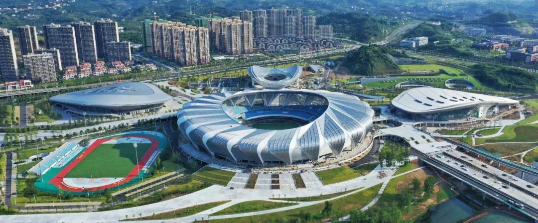 宜昌奥体中心,总用地面积1425亩,场馆区总投资23.35亿元,总建筑面积20.64万平方米,主要包含“一场四馆”:40000座体育场、8000座综合体育馆、1500座游泳馆、2000座网羽运动中心、400座射击馆。