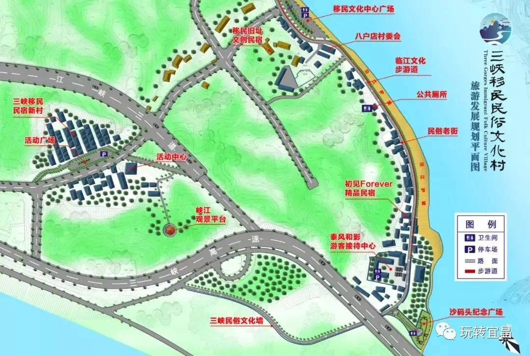 三峡移民民俗文化村规范建设范围自污水处理厂八户店村老街入口始,沿老街赵沙路至村委会,经江峡三路延伸段至黄家湾三峡移民居民点片区,规划总占地面积约280亩,规划总投资8300万元。