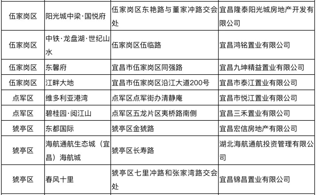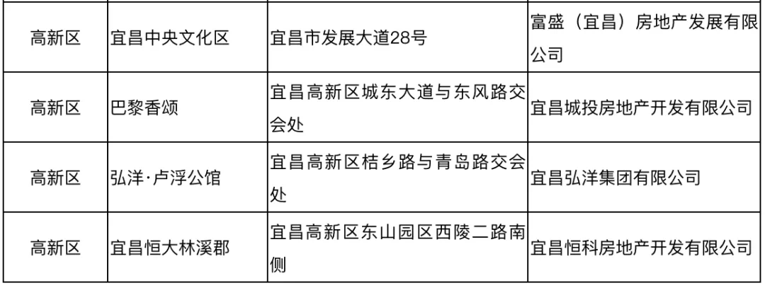 2019年10月宜昌市城区(不含夷陵区)尚未售罄的商品住房项目简要情况