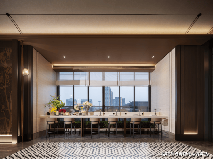 酒店式社区大堂:朝向广场,入口前场、门廊、大堂、内庭院、单元大堂组成的归家动线,配合建筑、景观、室内、标识、灯光一体化设计,汲取糅合后的南洋文化元素细节,把酒店式归家仪式感拉满,彰显非凡气度。