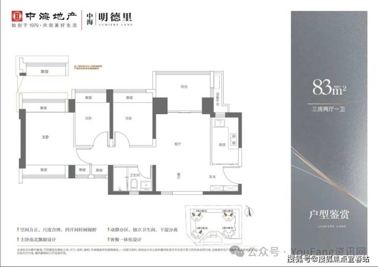 品质美宅:建面约83-113㎡3-4房品智美学住宅,多面宽朝阳,揽清风入怀。