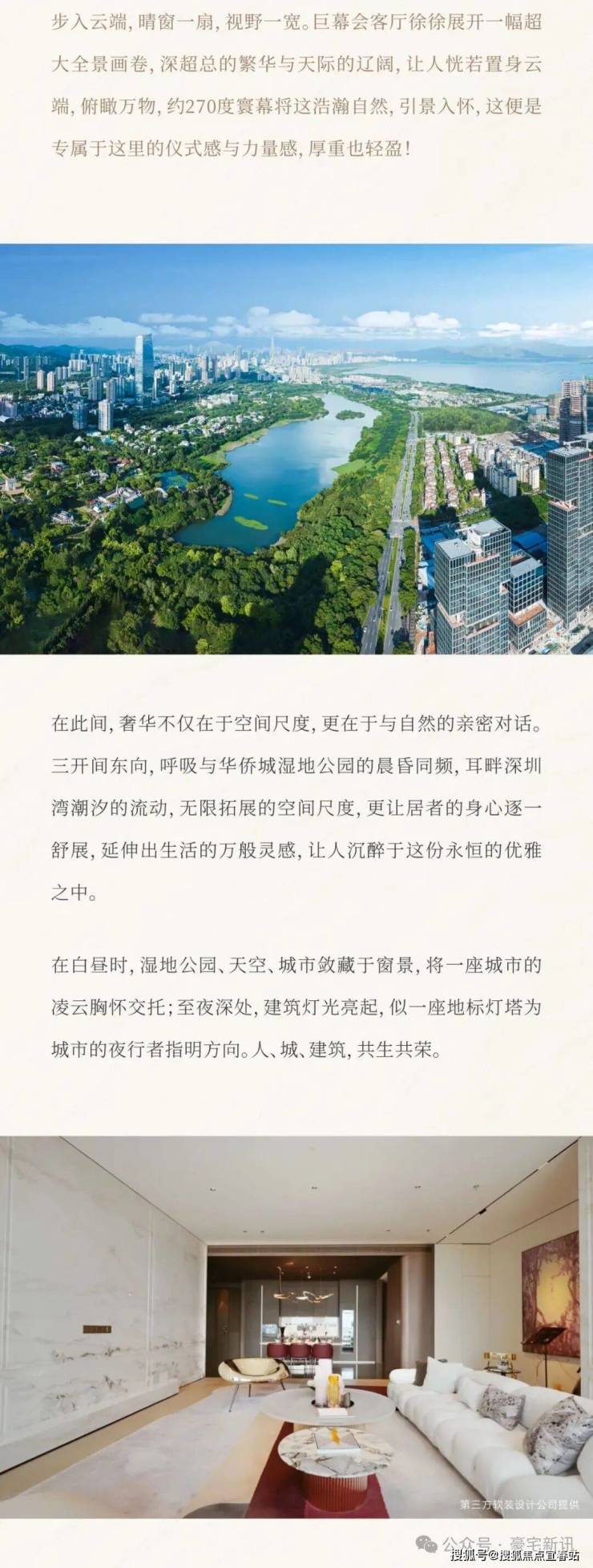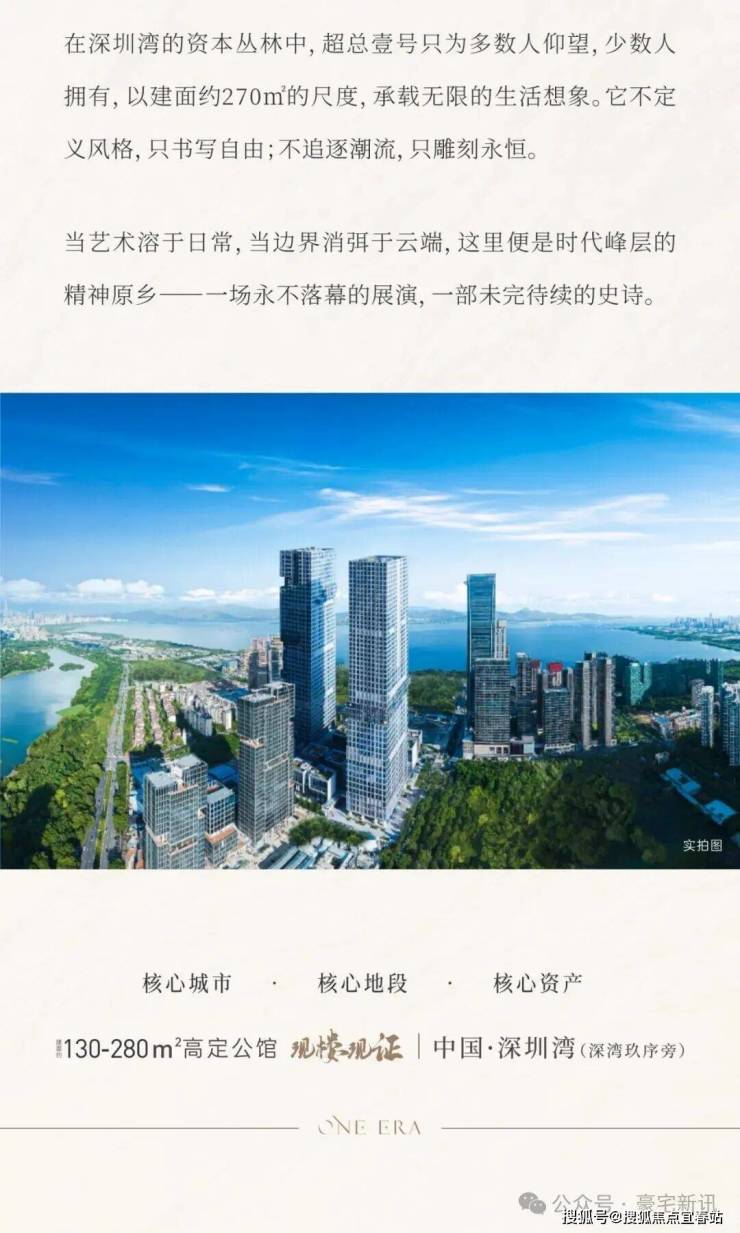 世界超总的壹号藏品 | 建面约130-280㎡高定公馆 现楼现证单价约56666元/㎡起,带1.2万/㎡奢装,仅1/4中海深湾玖序价格,买深超总稀缺奢居大平层!一街之隔深湾玖序几乎售罄,本项目是深圳湾超级总部基地唯一在售豪宅大平层项目地段价值远超宝中、蛇口等非深圳一环热点片区!东向永久无遮挡华侨城湿地公园景观,南向局部看海,西向局部看高尔夫,北向看世界之窗人文景观!无缝衔接中央绿轴,畅享中央绿轴头排景观视野,无车化步行至深圳湾海边享受滨海生活12000元/㎡全球一线品牌奢装加持,CCD、梁志天、诗意空间等全球大师设计打造顶豪标杆 !