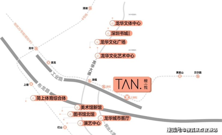 项目3公里范围内有龙华文化广场、龙华文体中心、深圳书城-龙华城、深圳市美术馆新馆(试运营)、深圳市图书馆北馆 (试运营) 、深圳市文化馆新馆 (建设中) 等市政级文化配套、超核绿心公园