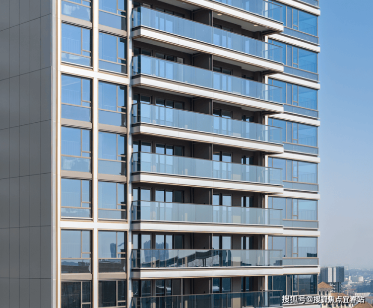 建筑立面以现代简约的玻璃与铝板,勾勒出鎏光镜面的挺拔轮廓。细节处,则从广府「满洲窗」与「叠山纹」中提炼弧线元素,让建筑兼具国际风范与在地文脉。