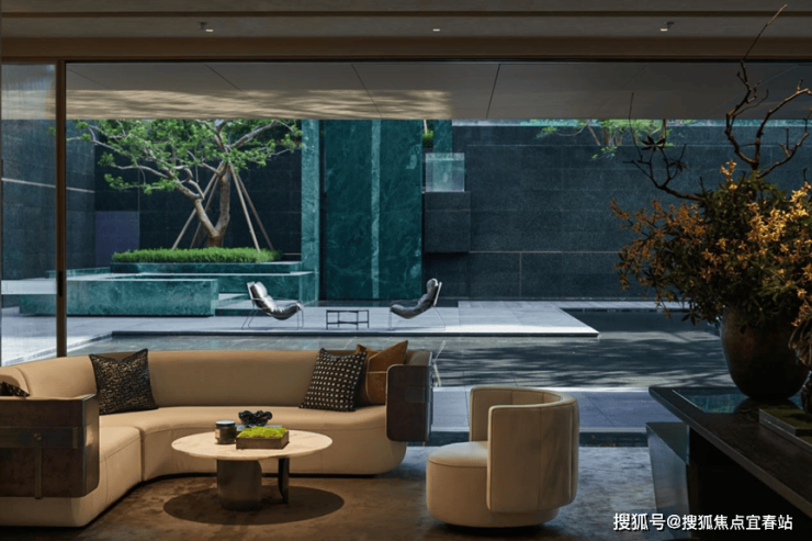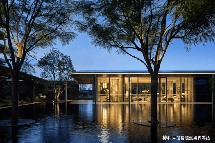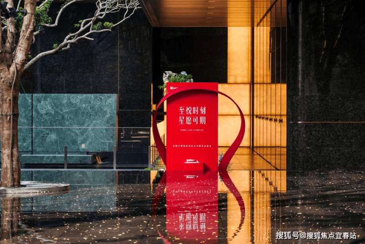 这场旅程始于园区入口——两棵超50年树龄的全冠罗汉松,以苍劲姿态守护家宅祥瑞;穿过蕴含正能量寓意的白水晶照壁,步入酒店式迎宾前厅,一株硕果累累的古桩孤植铁冬青,静候家人归来;信步而至的镜面水院,六棵凤凰木阵列水中,取意「有凤来仪,筑巢引栖」;此后,再经由作为社区客厅的悦仕会所与绿意盎然的中央园林,最终抵达静谧尊崇的楼栋大堂,完成一场从「城市菁英」到「家庭主人」的身份与心境转换。