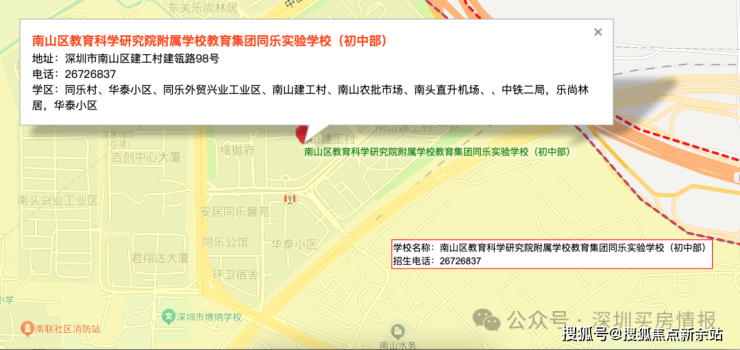 广东省深圳市南山区中山园路与铁二路交汇处(同乐实验学校旁)