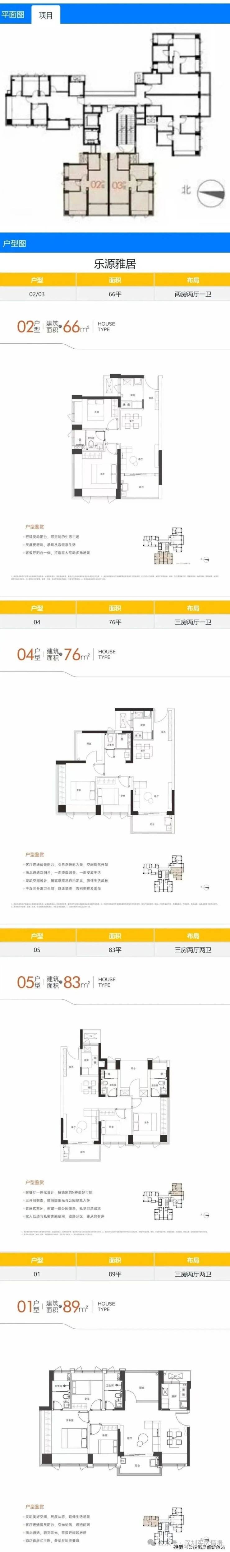 项目是新规后的户型,66㎡的2房1卫,76㎡的3房1卫,83㎡的3房2卫,89㎡的3房2卫(可改4房)。