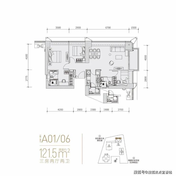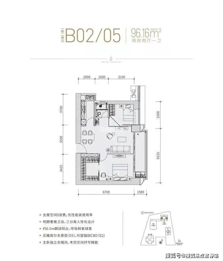 分布在02(东北向)和05(西南向),作为「富通九曜公馆」入门级户型,细看主卧空间很大,硬隔个2+1房还凑合。但无论是二房还是2+1,一卫其实并不匹配福田这个位置的主流群体。