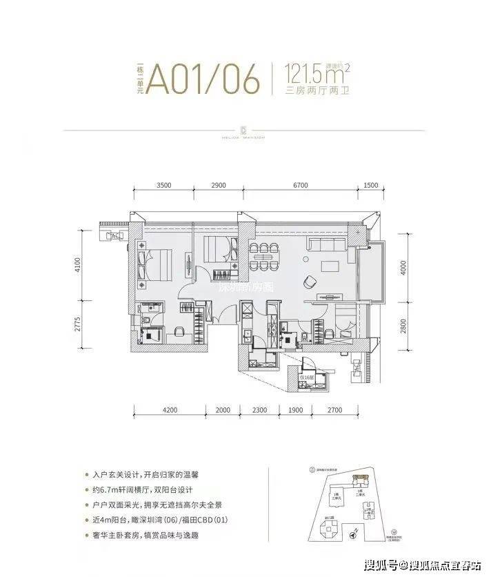 采用全套房设计,一体化客厅,超大面宽阳台,多角度采光,270°全面落地玻璃,IMAX巨幕视野,高尔夫景观+深圳湾海景+城市CBD的360°一览无遗,打造出“一层一世界”的空间视野,推门而入的第一刻,视界已在俯仰之间,以稀贵视野纳藏每一帧风景。