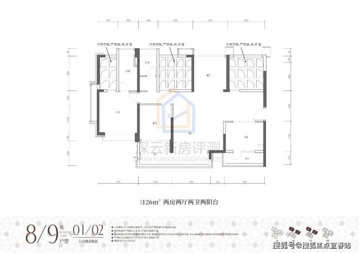 ①高阔奢享:建面约86-176㎡墅境宽宅,改善型三房四房,全南向户型天然舒适;两梯三户低梯户比,多阳台露台设计,悦享阔绰居住空间;方正户型结构搭载更多半开放设计,高阔空间实用率与灵活性大幅提升。