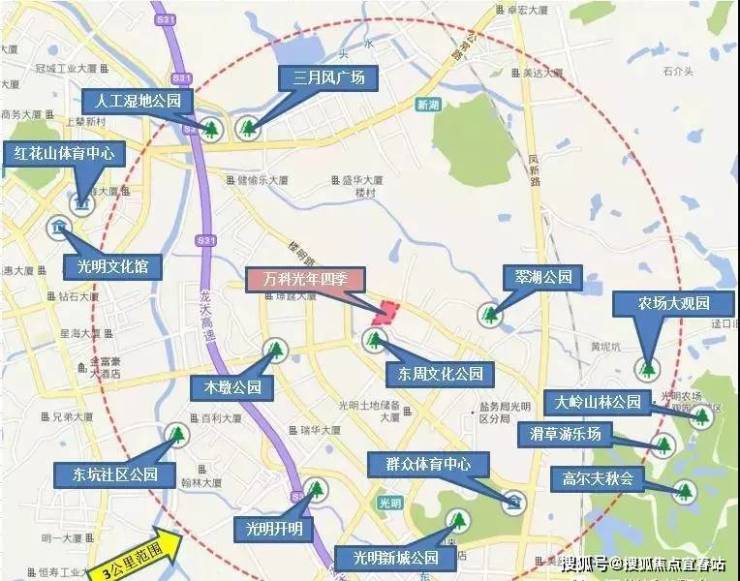 文娱配套方面,项目周边有光明群众体育中心、光明农场大观园、光明小镇欢乐田园等。项目周边还有约2.2平方公里大型市政公园项目——科学公园正在规划中,家住光明休闲娱乐的设施还是蛮不错!