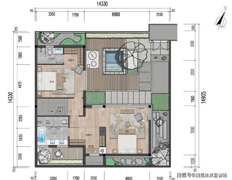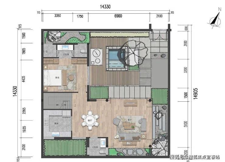 【独栋小院:三室两厅四卫 建面约97㎡】