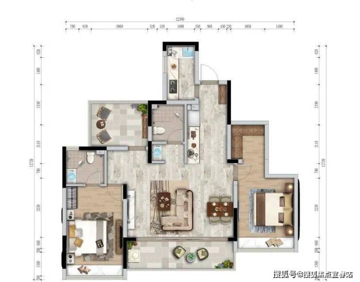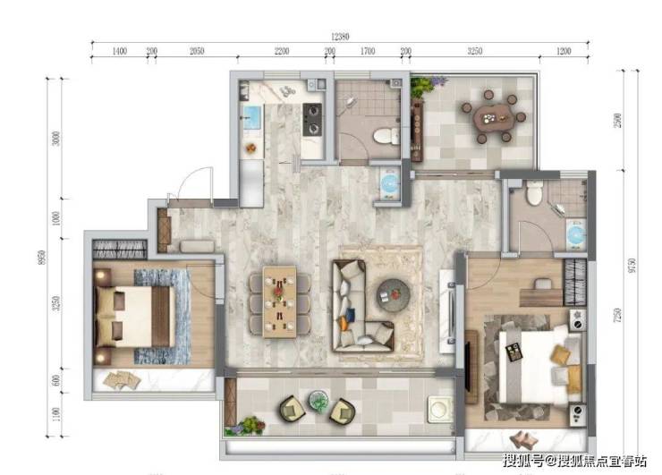 【阔境美宅:三室两厅两卫 建面约103-105㎡】