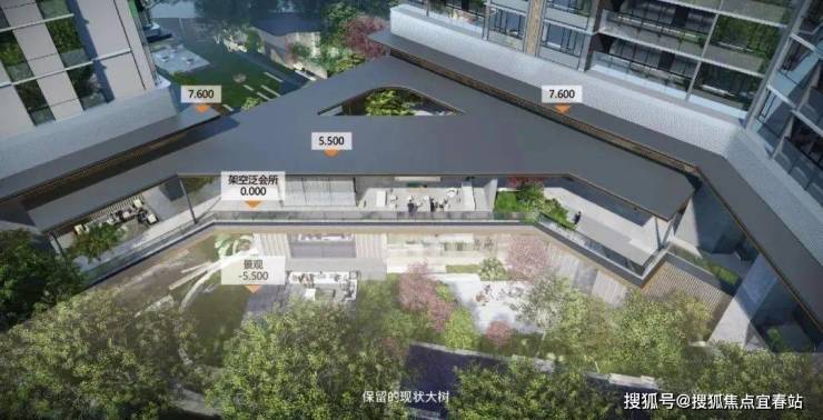 规划预留10米高的高架空空间以及下沉花园,结合大树打造生态自然的人文场所。