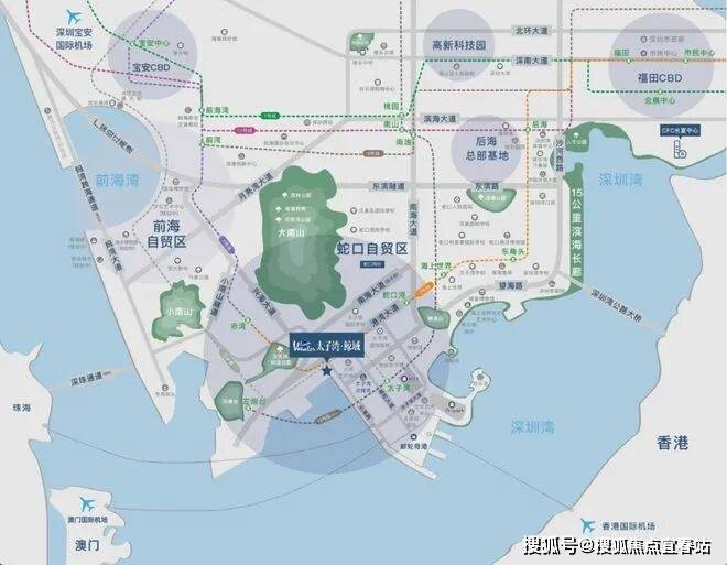 距地铁 12 号线太子湾站约 200 米、2 号线蛇口港站约 660 米,5 号线赤湾站近邻,三轨交汇,30 分钟覆盖南山、福田核心区。紧邻22 万吨级太子湾邮轮母港,海路直通港澳及国际航线。自驾经望海路、南海大道、兴海大道,半小时达深圳 T3 机场,1 小时覆盖香港、澳门机场,构建 “海、陆、空、轨” 四维交通网。