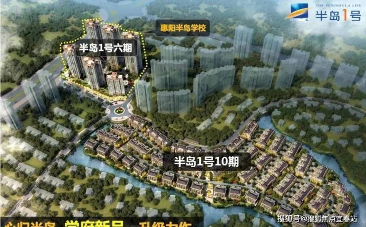 半岛1号,位于惠州惠阳中心区,项目由惠阳新城市房地产开发有限公司开发,毗邻惠阳区政府,门前依傍着天然的淡水河、半岛文化体育公园,高尔夫球场,项目一共分12期开发,目前1期、2期、3期、4期、5期、11期和8期已经开发出售,居住氛围非常浓厚。半岛1号6期位于项目的北侧,主打高层业态产品;半岛1号10期位于项目的中部,整体建筑和园林规划为西班牙风格,可以说是最具风情的组团。