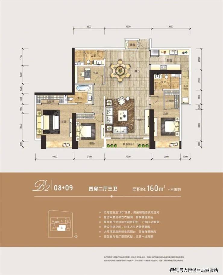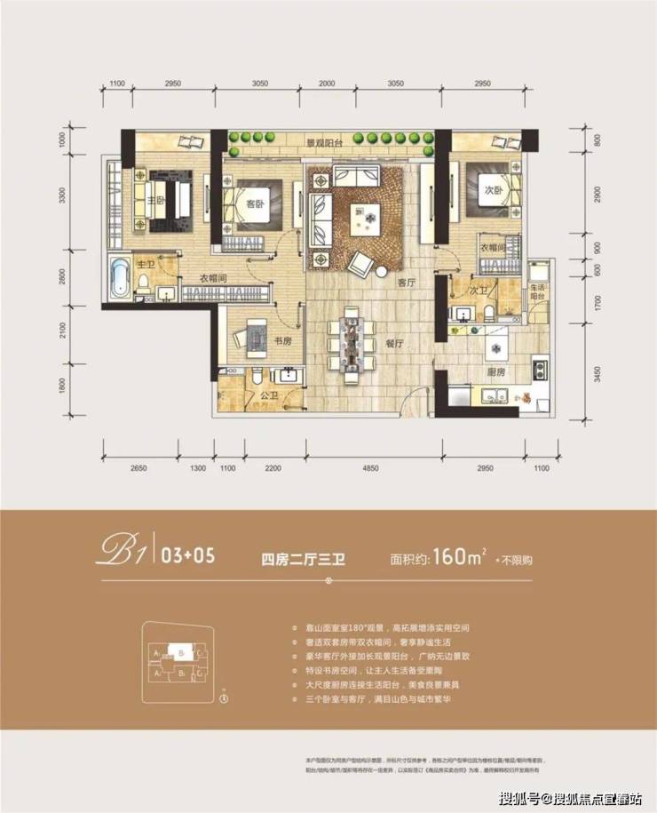 户型:B1/B2:约160㎡四房两厅三卫
