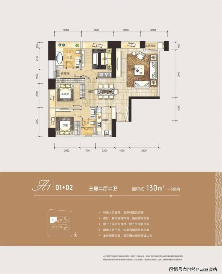 户型:A1/A2:约130㎡三房两厅两卫