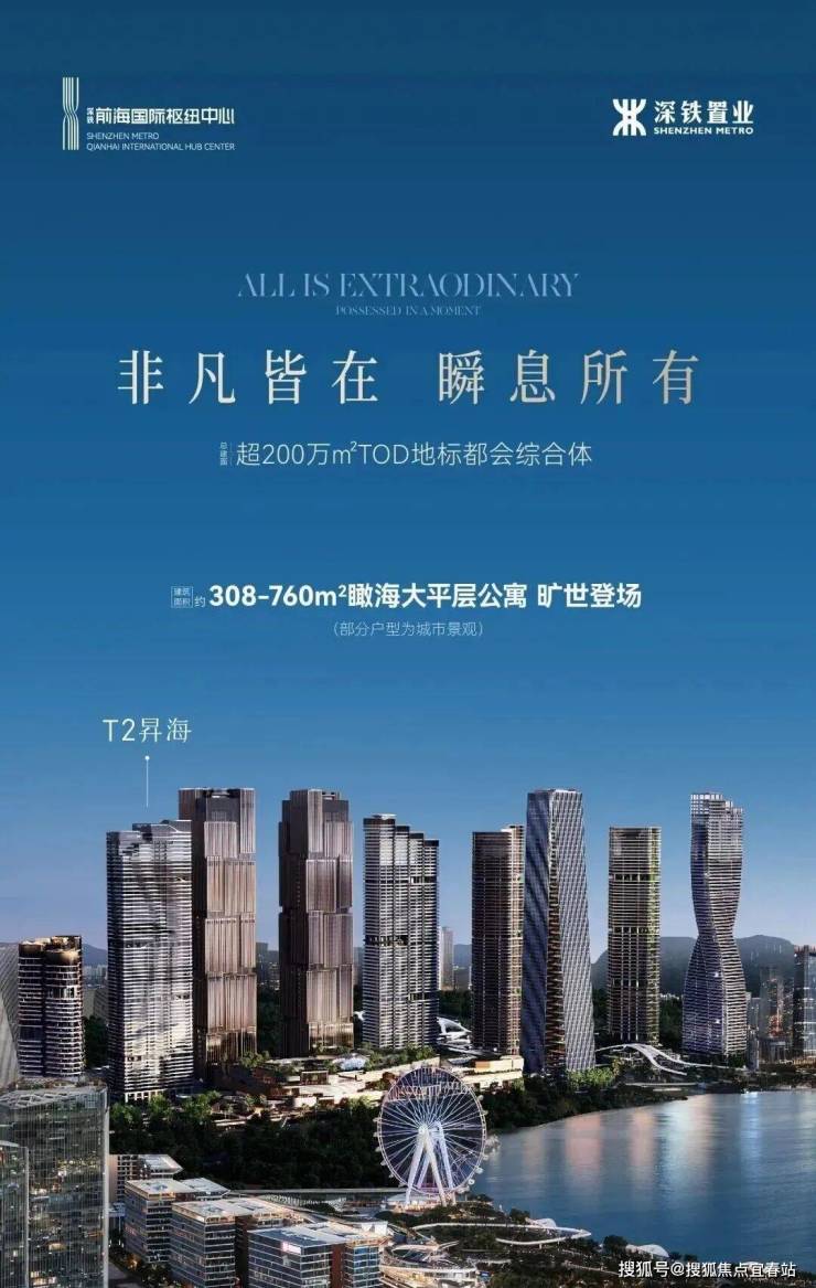 深铁前海国际枢纽中心首发T2 昇海,建面约308-760㎡瞰海大平层公寓,外立面取意风生水起之形,昂扬非凡人生格调,以全套房空间设计、IMAX环幕海景(部分户型为城市景观)、奢感公区配套,映照塔尖人物的生活尊崇。