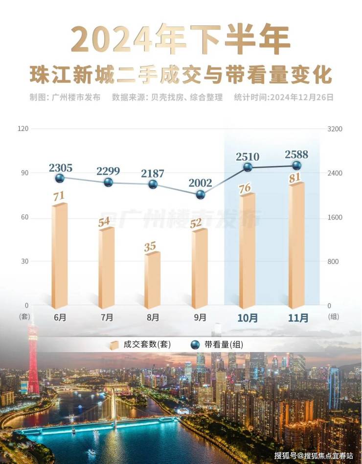 而广州豪宅最密集的珠江新城,带看和成交量也全面上扬。