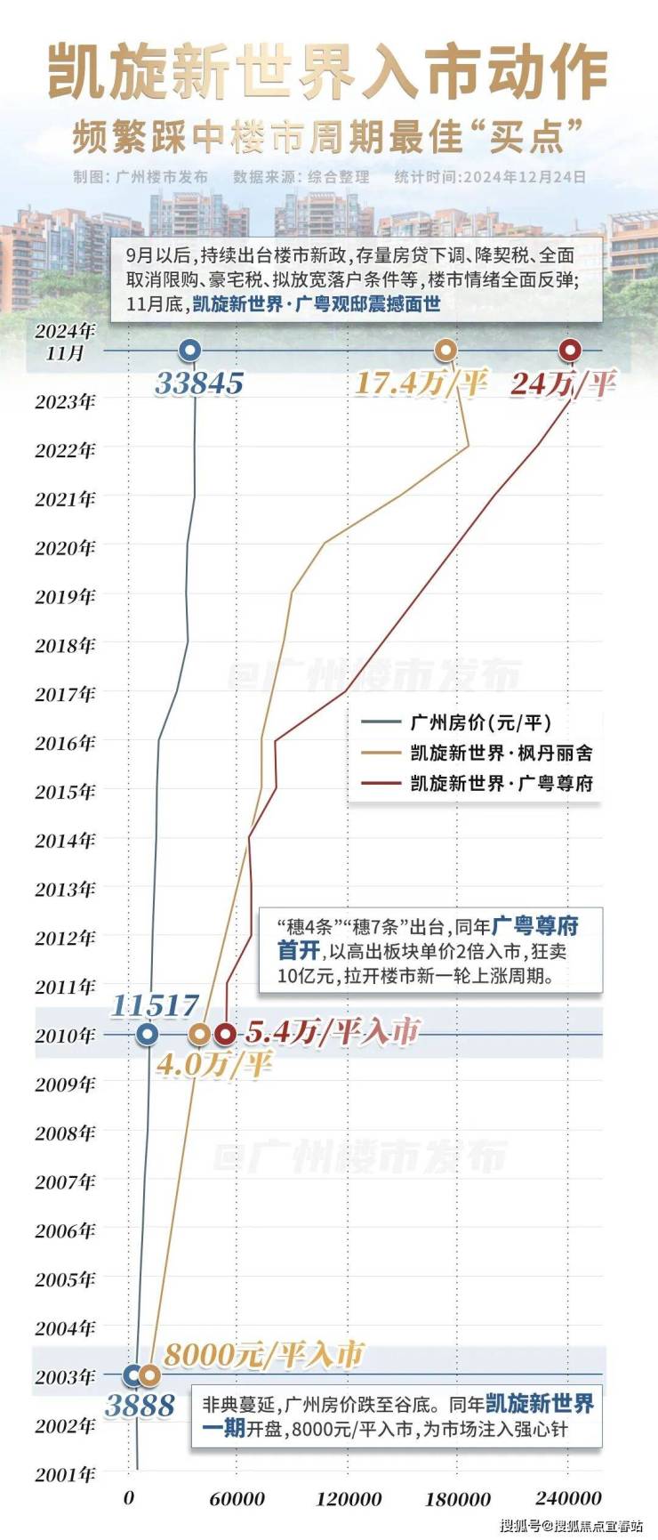 彼时,凯旋新世界一期以8000元/平首开被疯抢。1年后,广州房价全面暴涨。