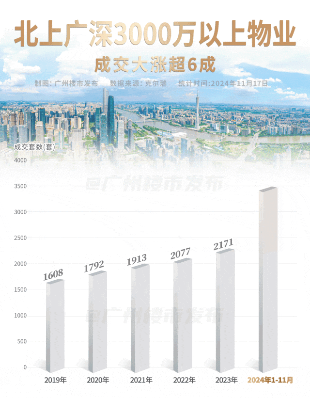 克而瑞数据显示,截止到11月,北上广深总价3000万以上物业同比去年大涨60%,涨幅刷新近6年来最高。