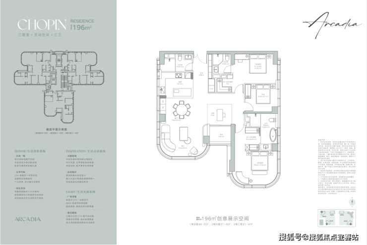 建面约196㎡户型是三居室+灵动空间+三卫的奢阔设计,让生活更加从容且惬意,匹配对生活有追求的商务精英或高净值人群的居住需求。