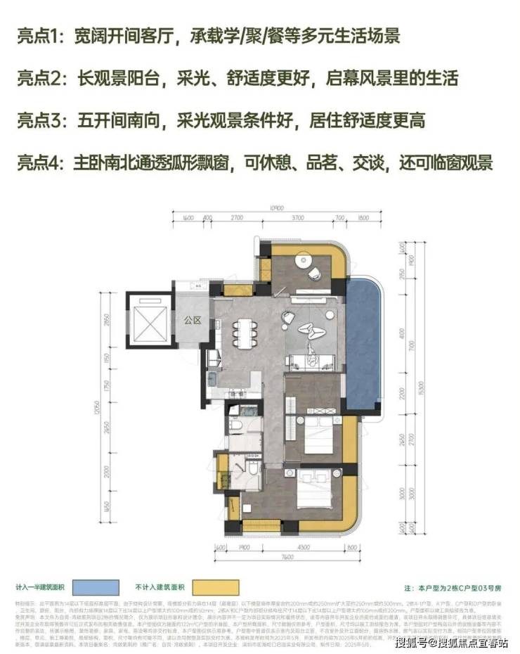 小区有485套纯住宅,车位595个,容积率5.14,共有三栋住宅。每栋做了36-37F高的4梯5户设计,每户都有专梯入户空间。户型通透敞亮,无柱大尺度飘窗、大宽厅、大阳台,带来更多使用空间。