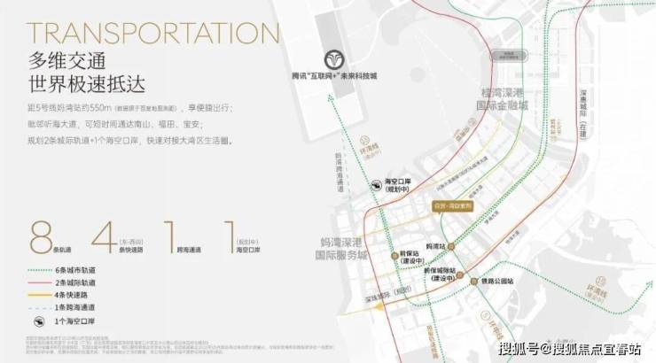 交通:距5号线妈湾站约550m,毗邻听海大道,可快速通达南山、福田、宝安及大湾区生活圈。规划8条轨道(城际+城市)、4条快速路、1条跨海通道、1个海空口岸。