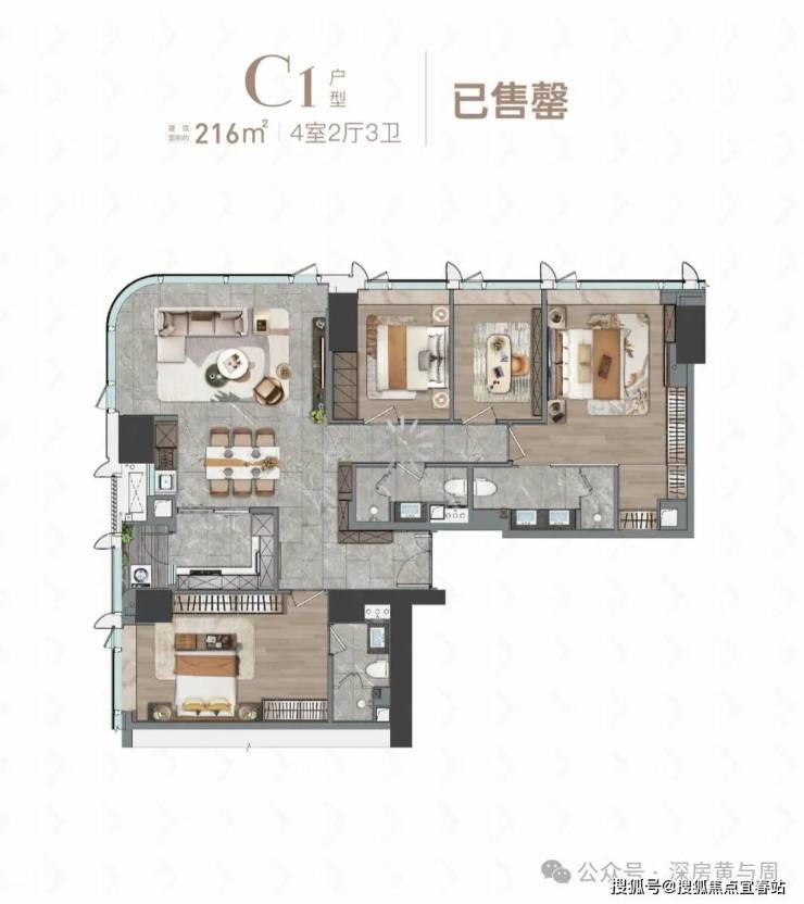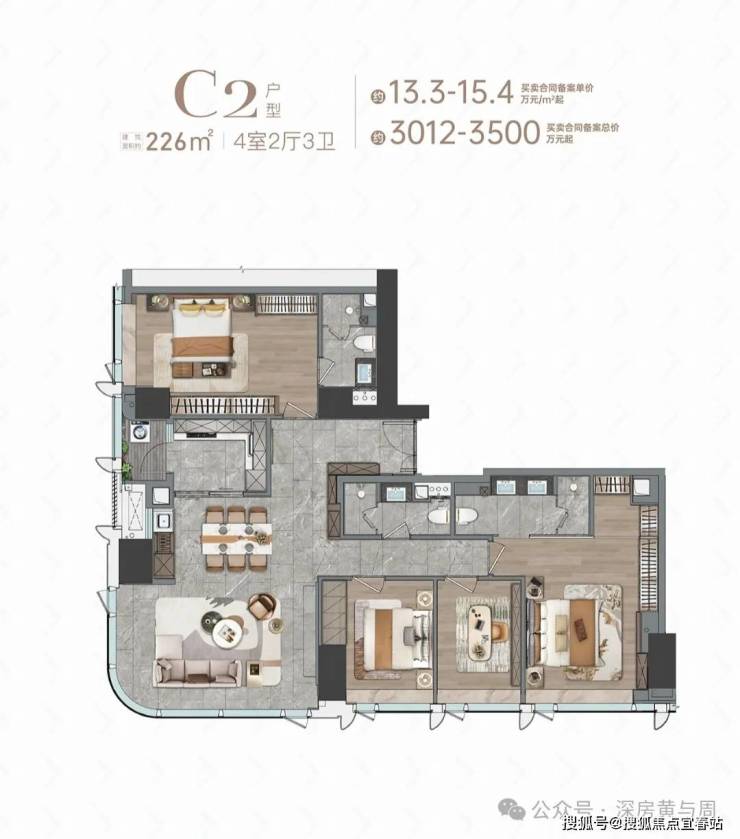 •主力产品:88-226㎡1-4房,部分户型可打通为620㎡复式;顶层415㎡起大平层,1270㎡户型可做6-8房,总价跨度1593万-5000万。
