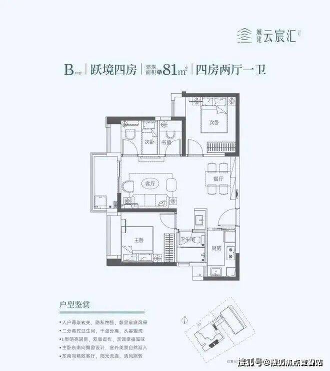 1、81平可以做四房,户型使用率较高,不过最小那个房间似乎功能不大,可以参照样板房做成3房会比较舒适