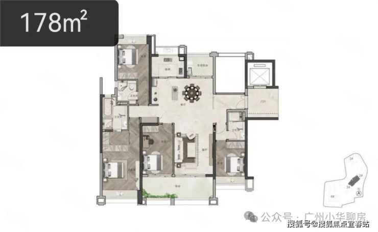 项目不大,一共有4栋,其中,4#为政府规划用房,只有1#、2#、3#对外销售,都是21层小高楼,专梯专户的设计,专属电梯直接入户,归家体验既私密又充满仪式感,除了1栋是五梯五户之外,另外2栋都是四梯四户,产品一共有7个户型,91㎡-178㎡的三至四房为主,总货量仅249套。