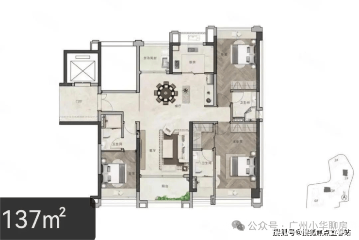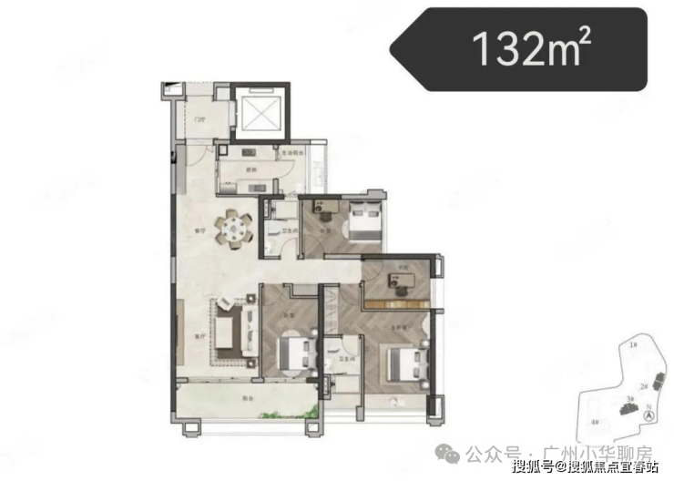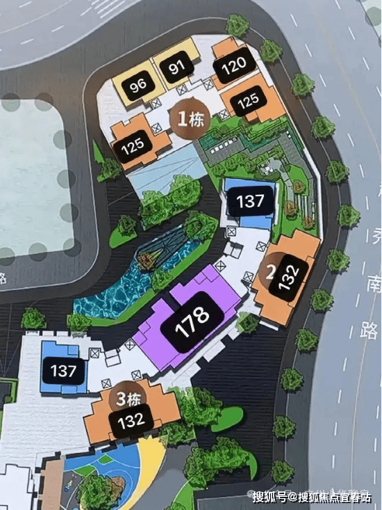 3#的位置比较往里面,比1和2栋都要好,一共有三个户型,以大面积为主,分别是132平四房,137平三房和178平四房