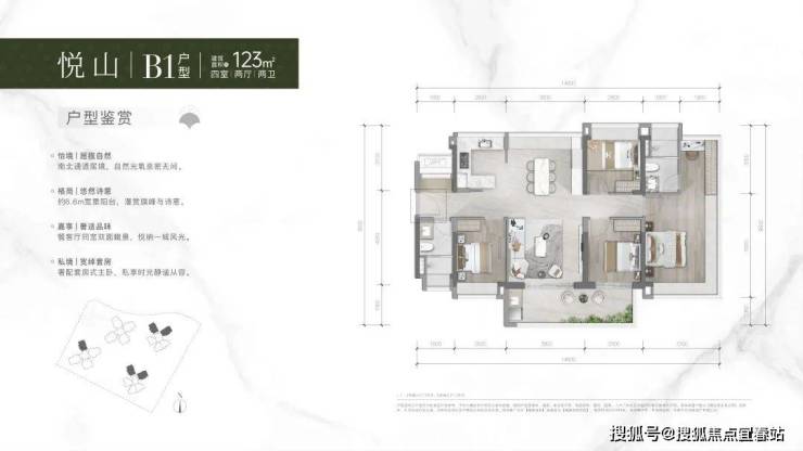 1号楼B1户型设计独特,两条腿朝向不同,西北向和西南向均有分布。虽为竖厅设计,但实现了四开间布局,一侧多个飘窗,采光极佳。户型灵活,可作三居室或四居室。打掉次卧,客厅可变宽敞大横厅,开间超6米,豪宅风范尽显。唯一遗憾是仅有一个阳台,一条腿朝北,在东莞多雨天气可能晒不到太阳。⭐旗峰润府销售中心电话:400-856-2867【已认证】⭐⭐