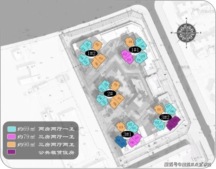 紫樾润府,总占地面积约1.64万平,总建筑面积约8.06万平,绿化率40%,共由5栋28-32层住宅组成,其中1栋1.2单元,2栋1.2单元总高层为32层,3栋1.2单元总高28层,规划总户数867套,可售商品房有757套,公共租赁用房110套(位于3栋1.2单元的04.05户型),全部为3梯7户设计。