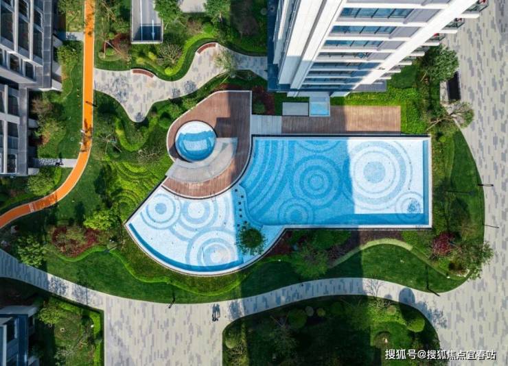 夏天将至,织水为景的灵动写意、中央镜面泳池的蔚蓝初心,业主们在小区内游泳池内舒缓夏日的炎热。