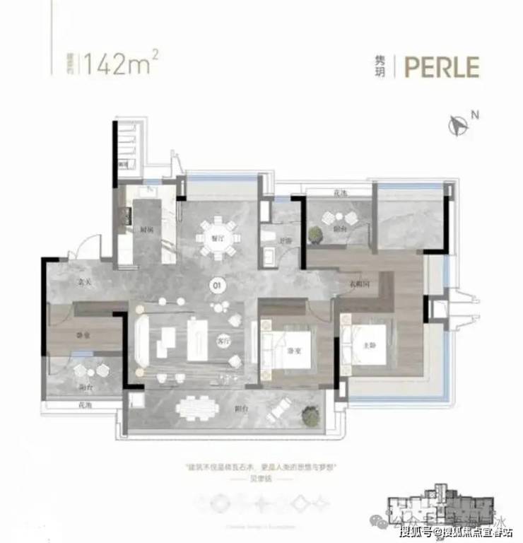 其中20#、21#的142平延续了一期的经典格局和品质,在飘窗采光面、空间尺度等细节之处做了迭新升级,打造板式楼栋设计,独梯独户的豪宅私密性,并加强了三面采光、实现了餐客厅、主卧的南北对流