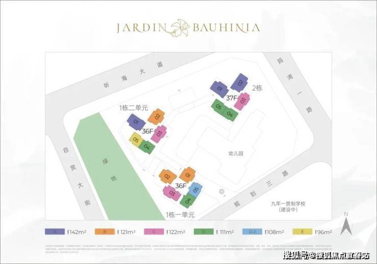 小区有485套纯住宅,车位595个,容积率5.14,共有三栋住宅,每栋做了36-37F高的4梯5户设计,每户都有专梯入户空间
