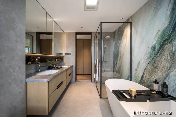 Ø 六场景卫浴系统:主卫浴缸搭配飘窗观景,体验已是极致,而在这个卫生间,所有的配置都是double:双台盆、双收纳场景,分离男女主人的不同偏好。