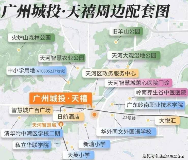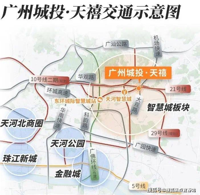 地铁方面,项目距离地铁21号线天河智慧城站直线距离800米,实际步行约1.4公里,需步行20分钟或骑行7分钟。该站为地铁快线,可3站到天河公园、6站到金融城、8站珠江新城,通勤效率较高。此外,未来还规划有地铁10号线、29号线,交通潜力较大。自驾方面,项目周边有科韵路、华南快速、环城高速等主干道,40分钟内可抵达珠江新城、琶洲、越秀等核心区。