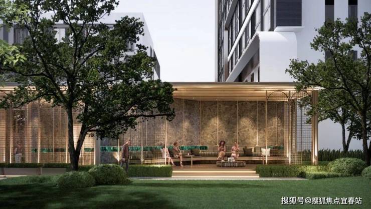 岭南空中美学馆,整体抬高约20米,串联度假式泳池、岭南园境、地面景观、社交泛会所,打造烟火之上的都荟谧境。