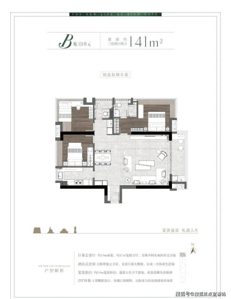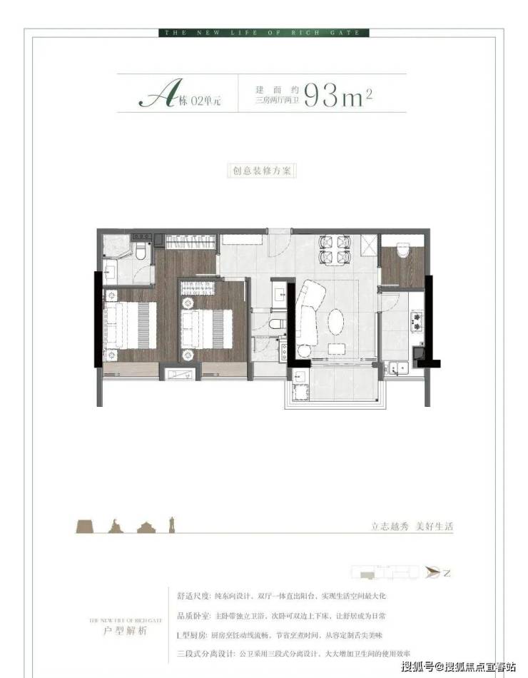 再比如,项目采用豪宅标准的板式结构设计,最大化视野与采光,高层视野无遮挡,俯瞰越秀芯千年风华。尤其边户设计实现三面采光与极佳通风,保障室内通透性,同时有效避免对视,提升私密性。