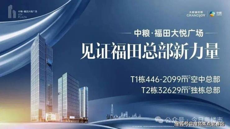 【中粮·福田大悦广场】T1栋,约187米商务坐标,建筑面积约446-2099㎡空中总部。配置建筑面积约1500㎡奢阔大堂、18部迅达智能电梯,升华总部企业形象名片;户户通上下水、节能开启窗等,创享总部企业舒适商务体验;50年产权,资产长久经营,与企业共赢未来。